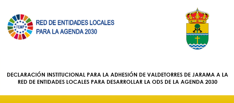 Pulse en Más información para visualizar la Declaración Institucional para la adhesión de Valdetorres de Jarama a la Red de Entidades Locales para desarrollar la ODS de la AGENDA 2030.